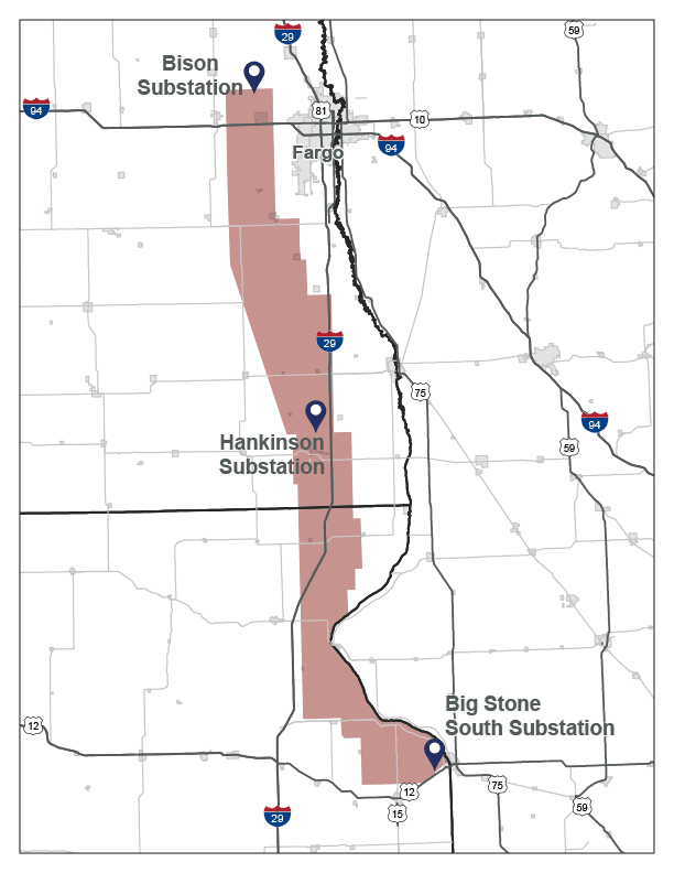 Imagine a future for North Dakota and South Dakota that’s defined by a resilient, reliable electric grid that supports rural living and thriving communities. The Big Stone South to Hankinson to Bison transmission line will help bring this future to life. Spanning approximately 150 miles, this 345-kilovolt (kV) line would run from Otter Tail Power’s Big Stone South Substation in South Dakota to its Hankinson Substation in North Dakota, then continue to Xcel Energy’s Bison Substation near Mapleton, North Dakota. Otter Tail Power will be the developer and construction manager.